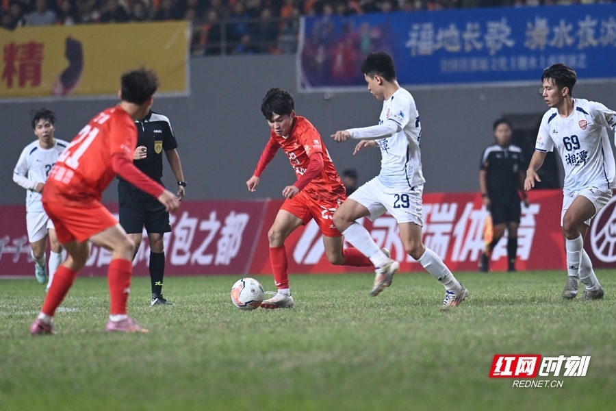 比赛伊始,怀化队借助主场优势,攻势迅猛,试图在开局阶段掌控主动权。然而,湘潭队迅速稳住阵脚,展开猛烈反扑。比赛第17分钟和第19分钟,湘潭队由邓卓和何阳钊在两分钟内连入两球,迅速确立领先优势。